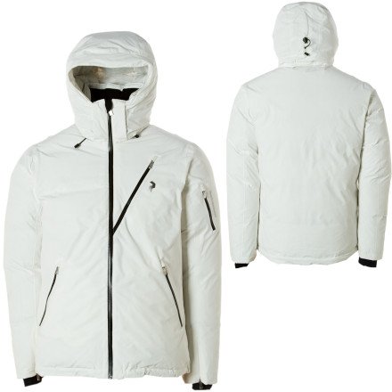 Warmth and style combine with the Peak Performance Supreme Feather Jacket. The 800-fill down provides heavy-duty warmth for everything from first chair to last call. A detachable hood and powder skirt turn this sleek ski jacket into a stylish apr?s jacket for a well-rounded ski vacation. Reach for another brewski or the shot-ski because articulated sleeves offer increased range of motion .